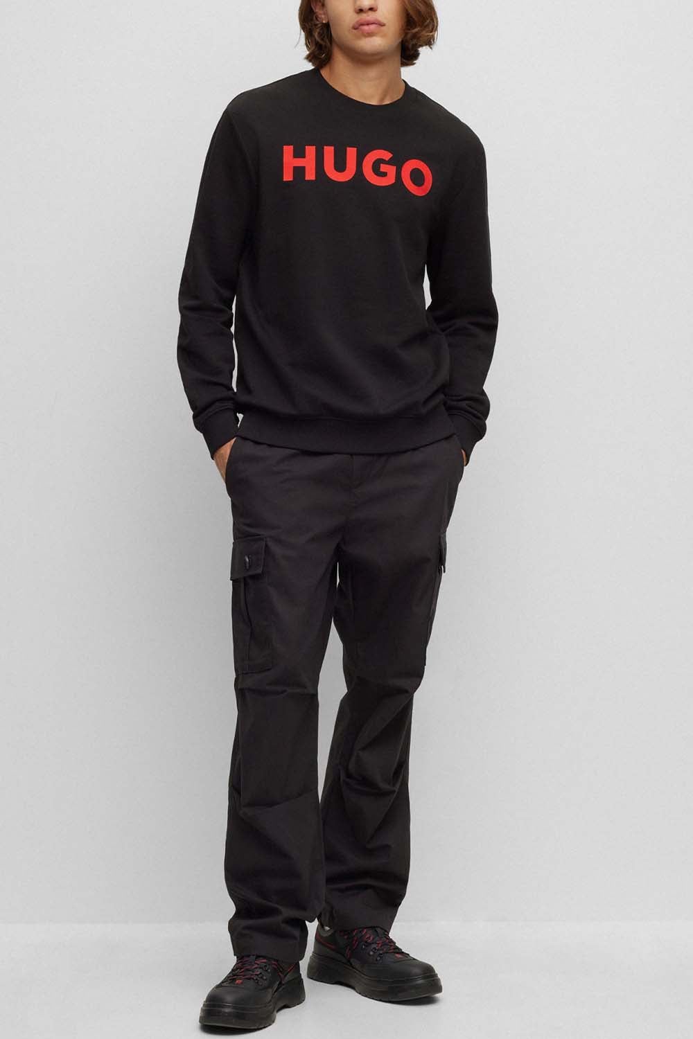 Αυτό το βαμβακερό Ανδρικό Dem Φούτερ Μαύρο Hugo 50477328-001 με το λογότυπο στο στήθος θα αναβαθμίσει τις εμφανίσεις της σεζόν.