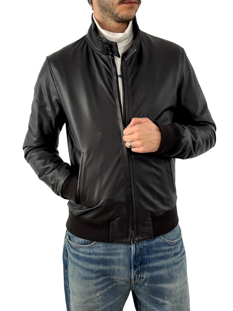 Ανδρικό Δερμάτινο Μπουφάν Μαύρο Maffei 51220-NERO