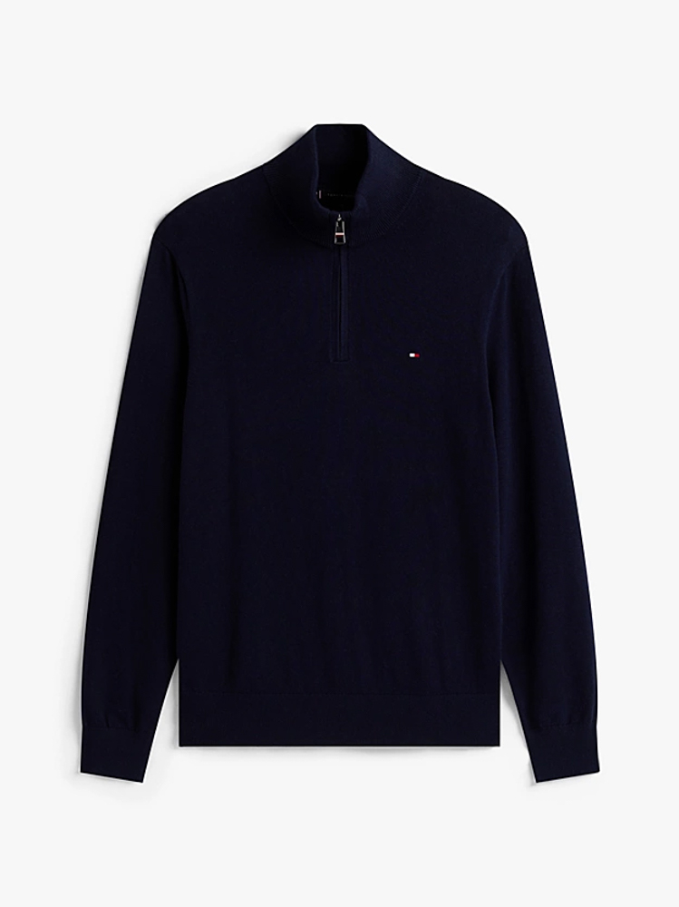 Φτιαγμένο από οργανικό βαμβάκι με κασμίρ, αυτό το Ανδρικό Ζιβάγκο Πουλόβερ Navy Μπλε Tommy Hilfiger MW0MW28049-DW5 διαθέτει signature λεπτομέρεια στο πίσω μέρος.