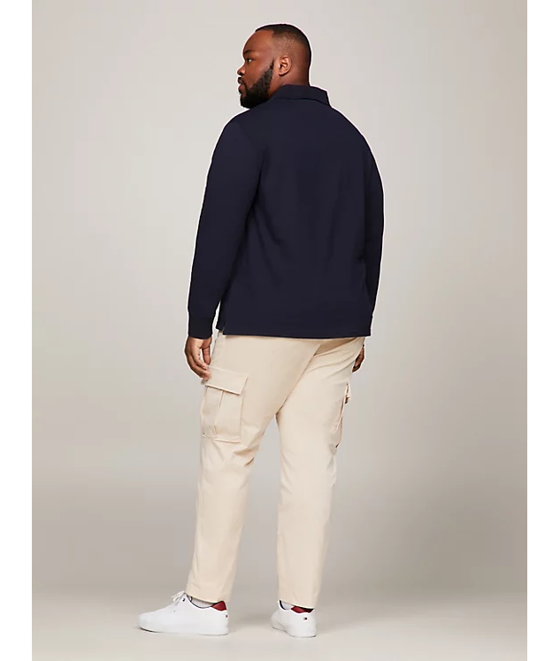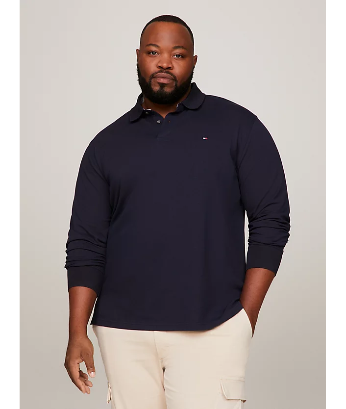 Προσθέστε στιλ στις εμφανίσεις σας με αυτό το Ανδρικό Plus Size 1985 Μακρυμάνικο Polo Navy Μπλε Tommy Hilfiger MW0MW34102-DW5 το οποίο είναι φτιαγμένο από ελαστικό οργανικό βαμβάκι.