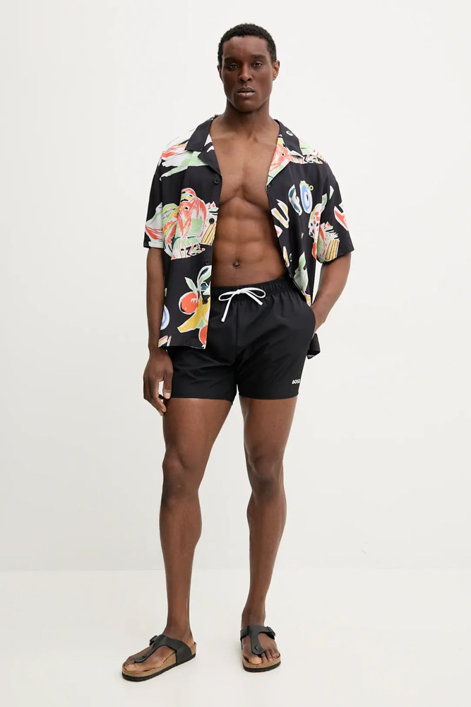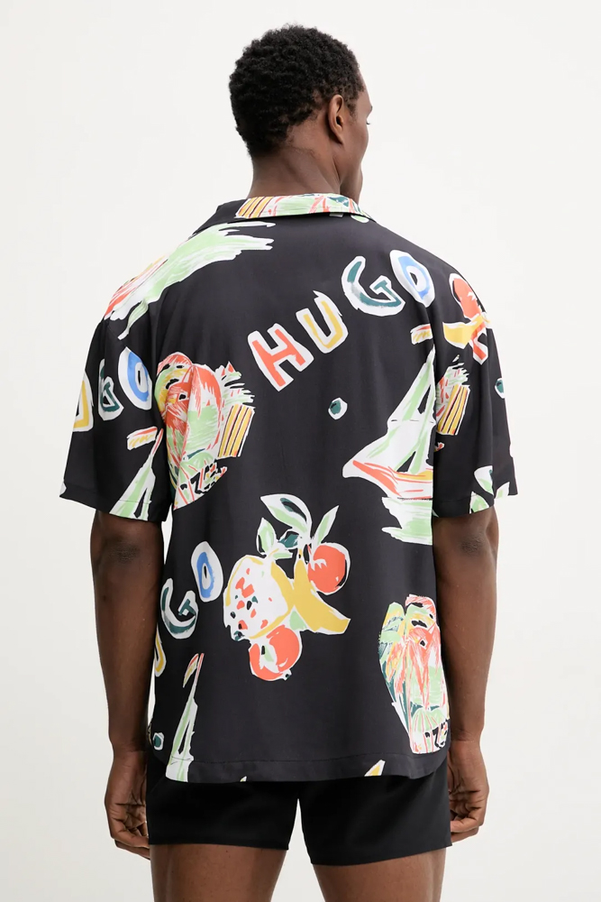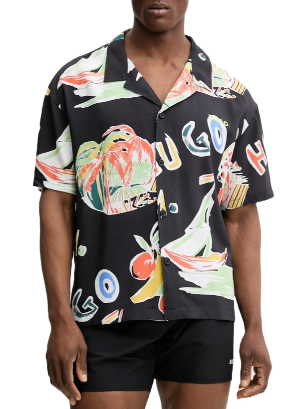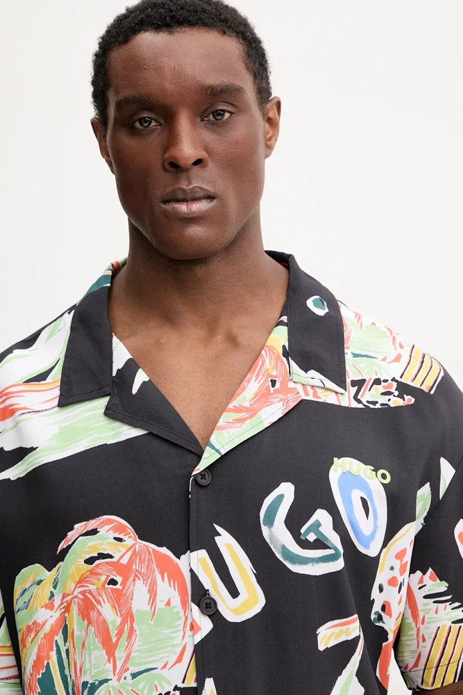 Για καλοκαιρινές εμφανίσεις με στυλ, επιλέξτε αυτό το Ανδρικό Κοντομάνικο Πουκάμισο Μαύρο Hugo 50540065-004 το οποίο είναι φτιαγμένο από βισκόζη με μοτίβο παντού.