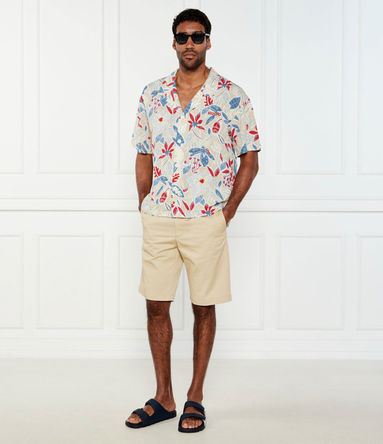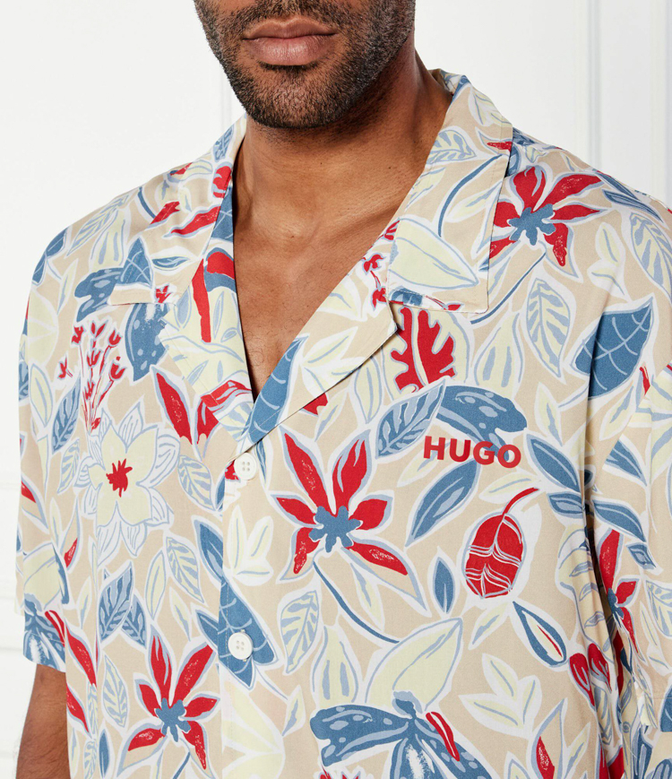 Για καλοκαιρινές εμφανίσεις με στυλ, επιλέξτε αυτό το Ανδρικό Κοντομάνικο Πουκάμισο Μπεζ Hugo 50540065-103 το οποίο είναι φτιαγμένο από βισκόζη με μοτίβο παντού.