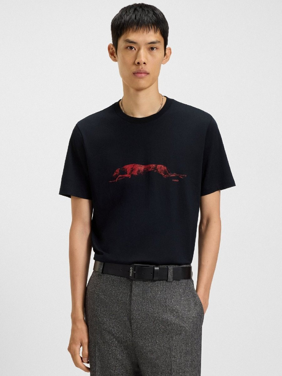 Αυτό το βαμβακερό Ανδρικό Didug T-Shirt Μαύρο Hugo 50548557-001 με τη στάμπα στο στήθος θα αναβαθμίσει τις εμφανίσεις της σεζόν.