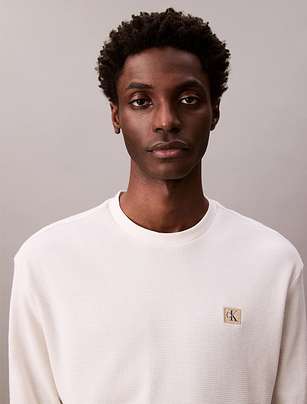 Η νέα PRE FW '25 collection της Calvin Klein μόλις έφτασε! Αυτό το Ανδρικό Μακρυμάνικο T-shirt Λευκό Calvin Klein LV040EM217-YAS με το λογότυπο στο στήθος θα αναβαθμίσει τις εμφανίσεις της σεζόν.