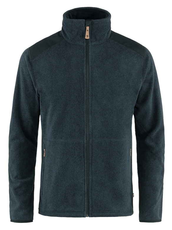 Ανδρική Sten Fleece Ζακέτα Navy Μπλε Fjallraven 81765-555 DARK NAVY με ψηλό γιακά και ενισχύσεις από ανθεκτικό υλικό G-1000 στους ώμους για λιγότερη φθορά από τους ιμάντες των σακιδίων.