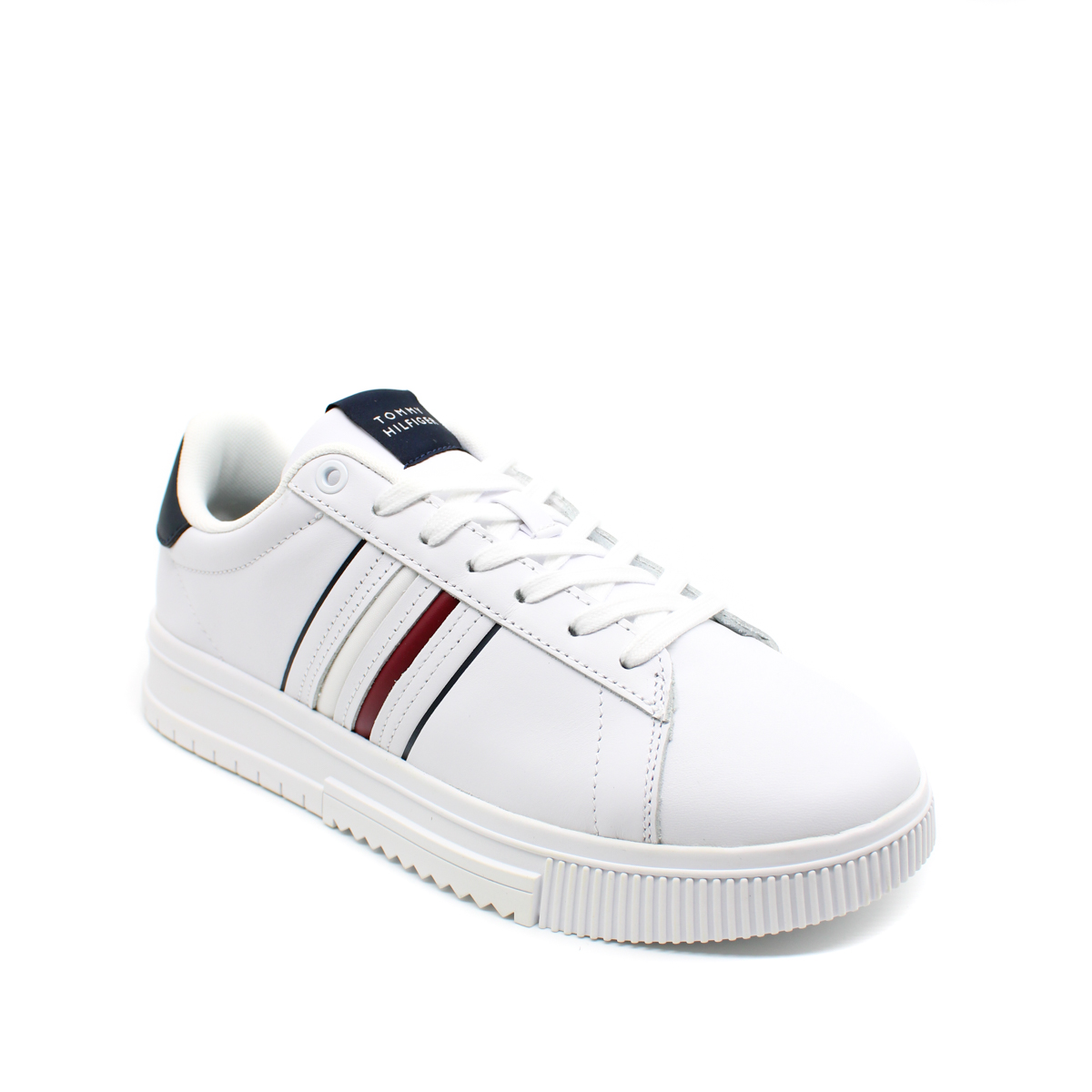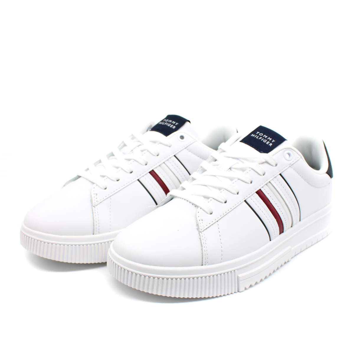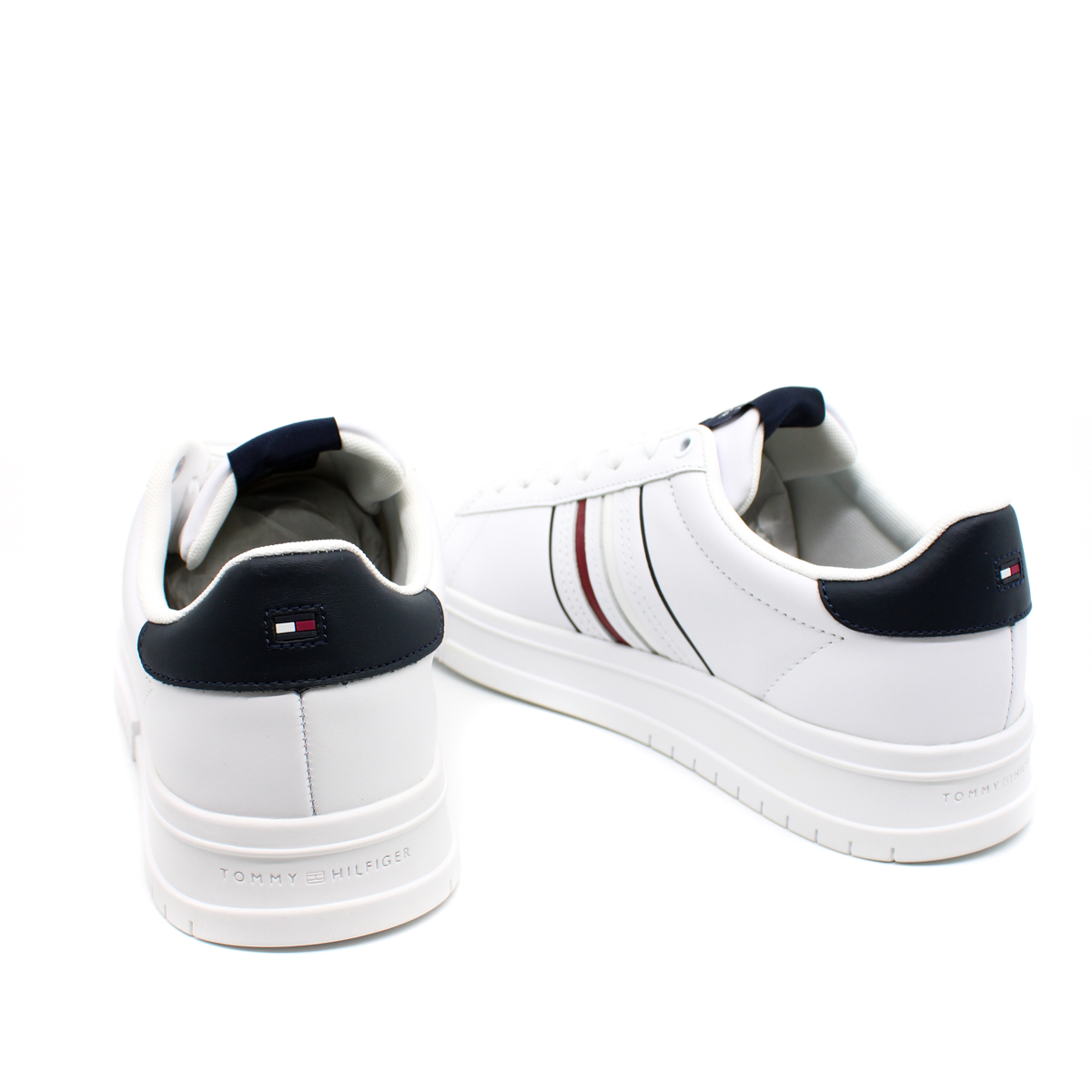 Η signature λεπτομέρεια στα πλαϊνά προσδίδει μια αναβαθμισμένη εμφάνιση σε αυτά τα low-top Ανδρικά Sneakers Λευκά Tommy Hilfiger FM0FM05406-YBS με μαλακό δερμάτινο άνω μέρος και σόλα στήριξης.