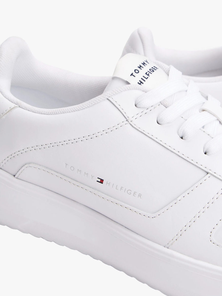 Η άνετη σόλα EVA καθιστά αυτά τα Ανδρικά Sneakers Λευκά Tommy Hilfiger FM0FM05529-YBS ένα άνετο καλοκαιρινό κομμάτι, ενώ το λείο δέρμα και το διακριτικό branding θα απογειώσουν τις εμφανίσεις σας.