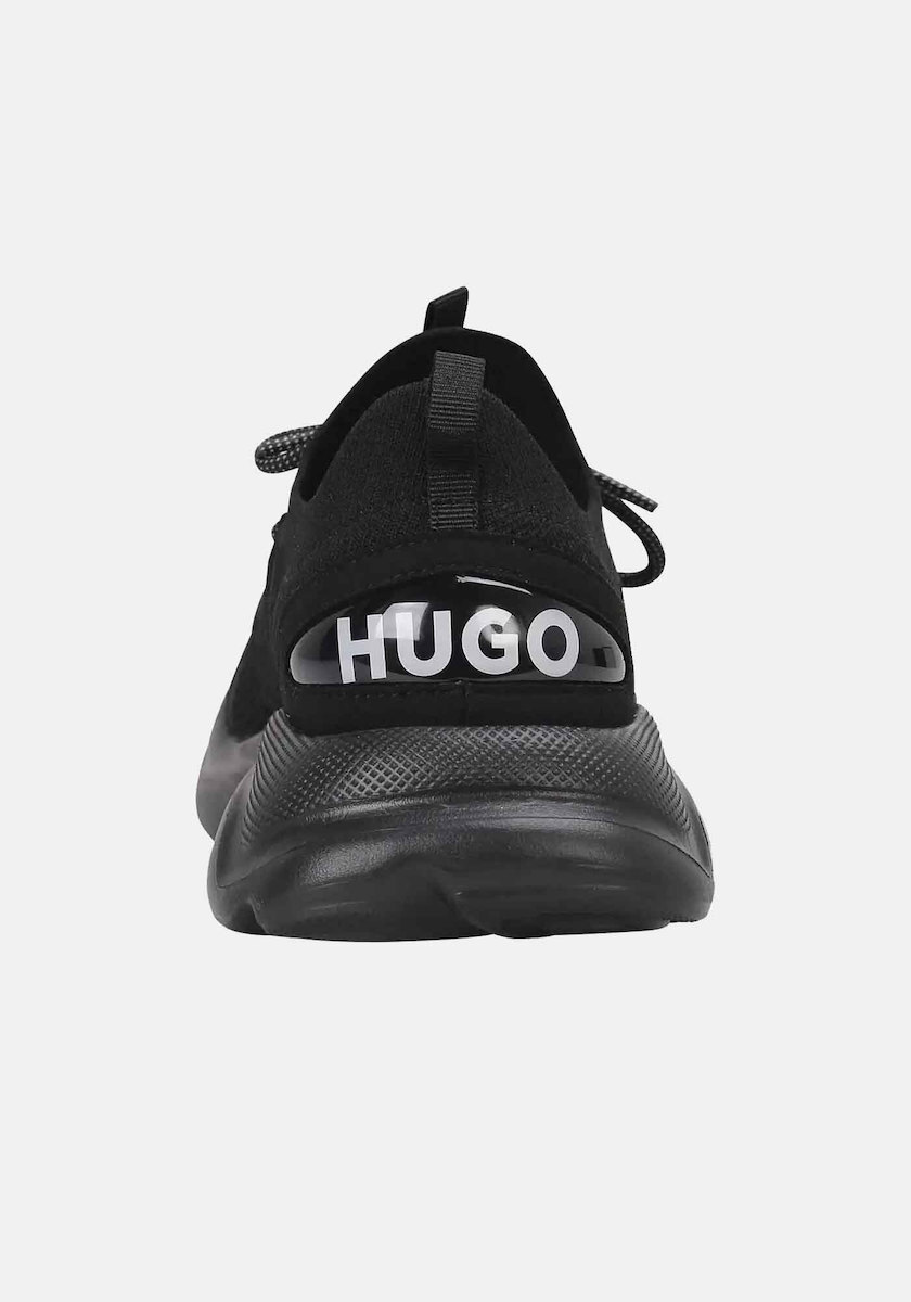 Αυτά τα Ανδρικά Leon Runn Kn Lace Up Sneakers Μαύρα Hugo 50541684-001 είναι σχεδιασμένα με slip-on σχέδιο και το λογότυπο HUGO σε αντίθεση πίσω.