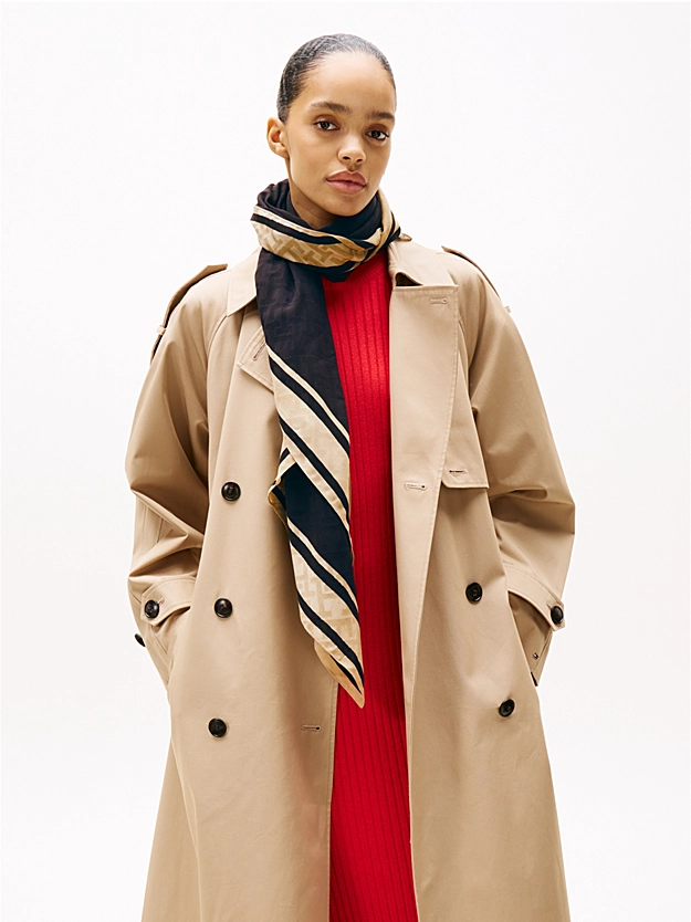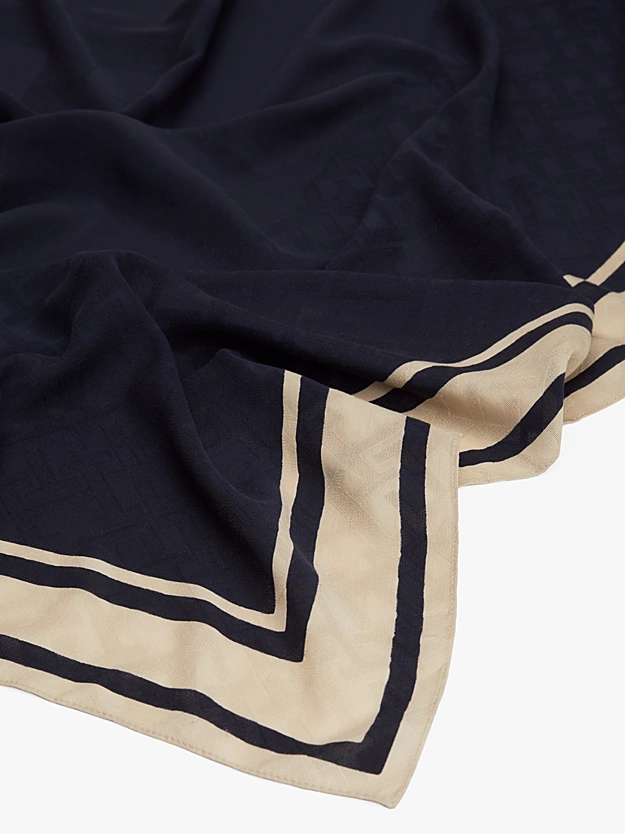 Φτιαγμένο από μετάξι και modal, αυτό το τετράγωνο Γυναικείο Φουλάρι Navy Μπλε Tommy Hilfiger AW0AW17144-DW6 συνδυάζει την πολυτελή απαλότητα με την εκλεπτυσμένη υφή.