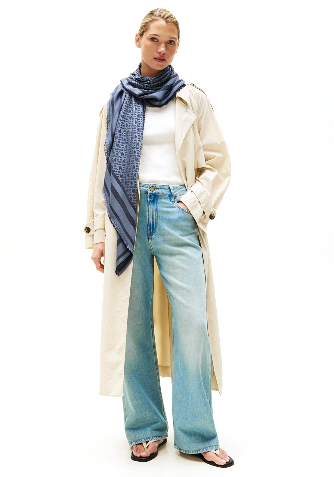 Η νέα PRE FW '25 collection της Tommy Hilfiger μόλις έφτασε! Δώστε παιχνιδιάρικο στιλ στις εμφανίσεις σας με αυτό το απαλό τετράγωνο Γυναικείο Φουλάρι Μπλε Tommy Hilfiger AW0AW17493-DW6 με το μονόγραμμα TH.
