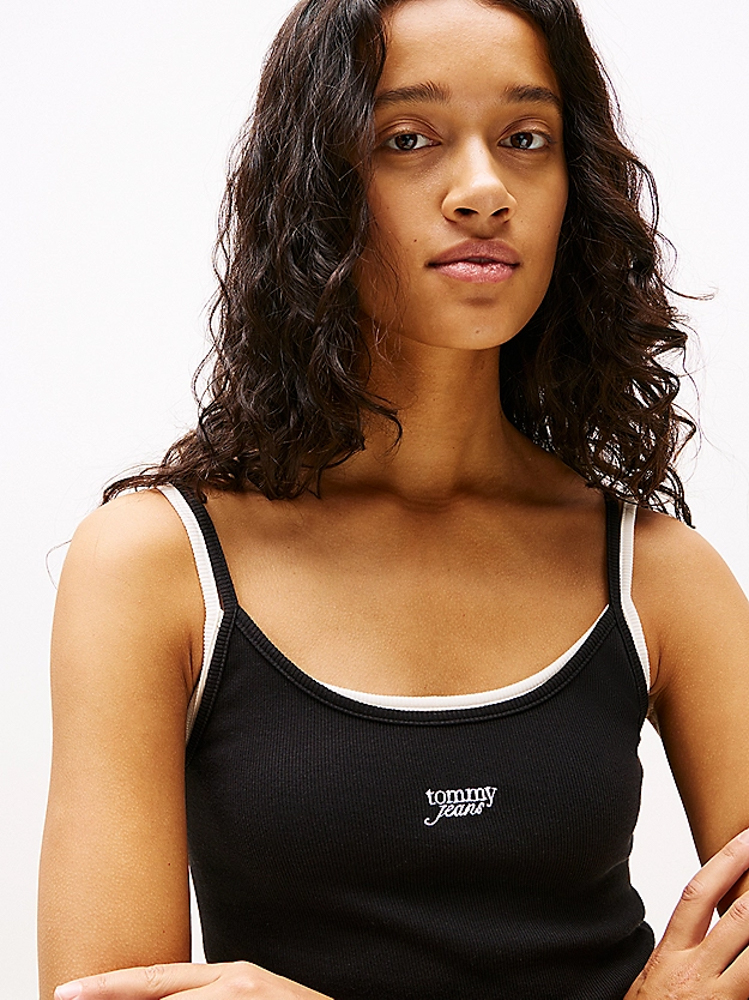 Αυτό το Γυναικείο Αμάνικο Φόρεμα Μαύρο Tommy Jeans DW0DW20330-BDS είναι η επιτομή του σπορ πολυτελούς στιλ, με τις λεπτές τιράντες και τη στενή γραμμή του.