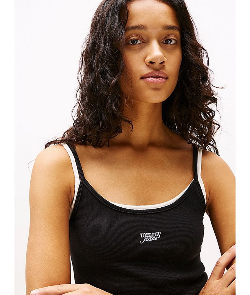 Αυτό το Γυναικείο Αμάνικο Φόρεμα Μαύρο Tommy Jeans DW0DW20330-BDS είναι η επιτομή του σπορ πολυτελούς στιλ, με τις λεπτές τιράντες και τη στενή γραμμή του.