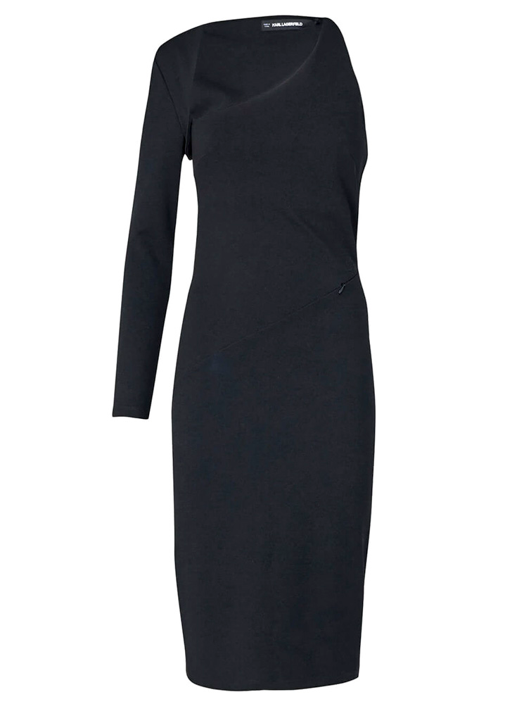 Το ασύμμετρο σχέδιο στη λαιμόκοψη και ο ένας ώμος προσθέτουν τολμηρό φινίρισμα σε αυτό το Γυναικείο Party Φόρεμα Μαύρο Karl Lagerfeld 246W1315-999 BLACK.