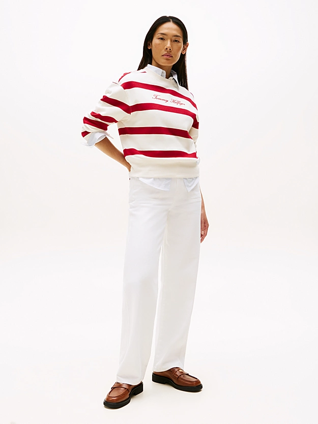 Αυτό το Γυναικείο Φούτερ Κόκκινο Tommy Hilfiger WW0WW45743-04Z με την κλασική λαιμόκοψη διαθέτει βαμβακερό φινίρισμα και κεντητό λογότυπο στο στήθος για signature στιλ.