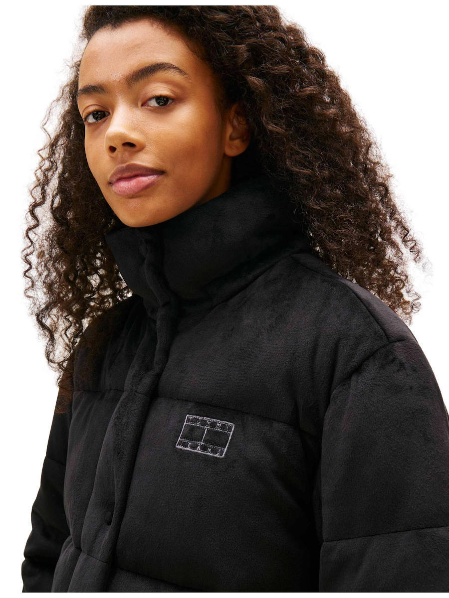 Ετοιμαστείτε για τις χιονισμένες μέρες με αυτό το Γυναικείο Puffer Μπουφάν Μαύρο Tommy Jeans DW0DW21668-BDS με βελούδινο φινίρισμα και σήμα Tommy.