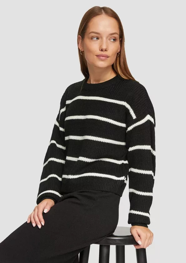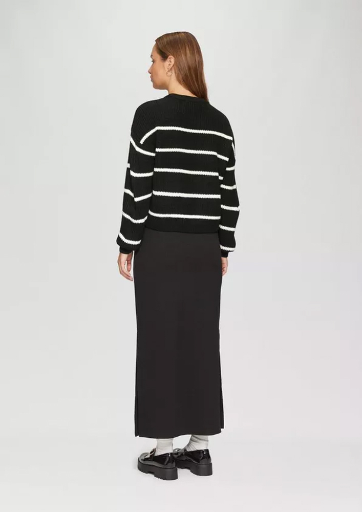 Προσθέστε στιλ στις καθημερινές σας εμφανίσεις με αυτό το Γυναικείο Πουλόβερ Μαύρο S.Oliver 2158979-05G0 το οποίο διαθέτει πλεκτό ριγέ σχέδιο.