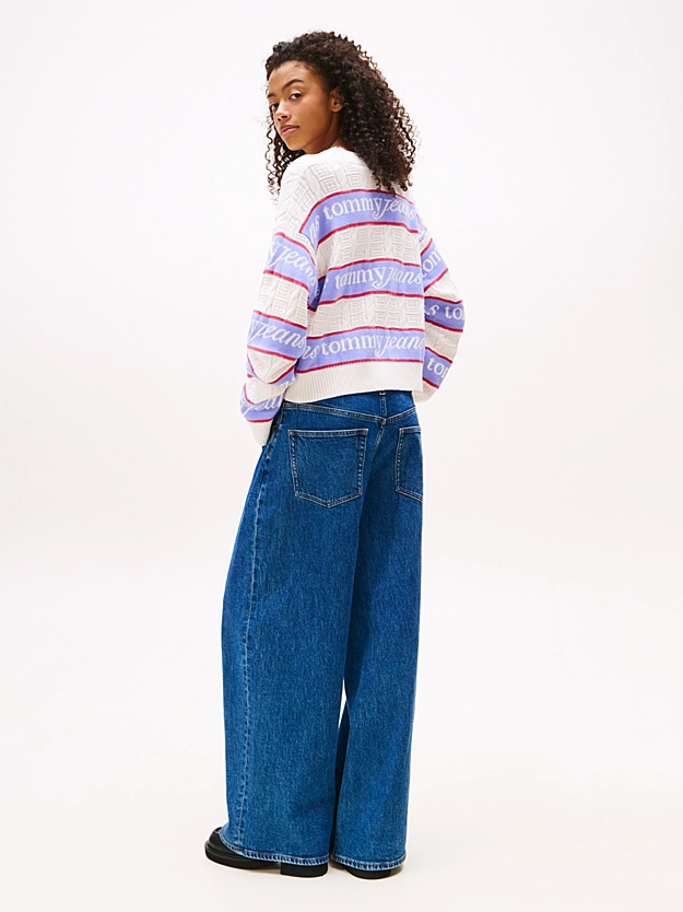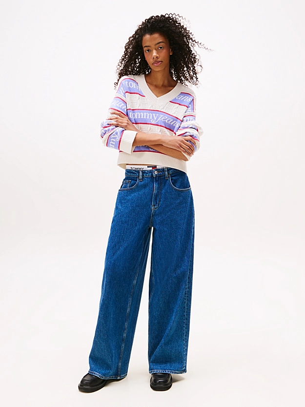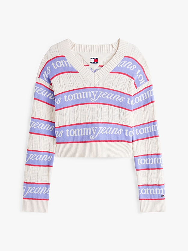 Αναβαθμίστε τις καθημερινές σας εμφανίσεις με αυτό το κομψό Γυναικείο Πουλόβερ Off White Tommy Jeans DW0DW21682-YBH με σχέδιο λογοτύπου και V-λαιμόκοψη.