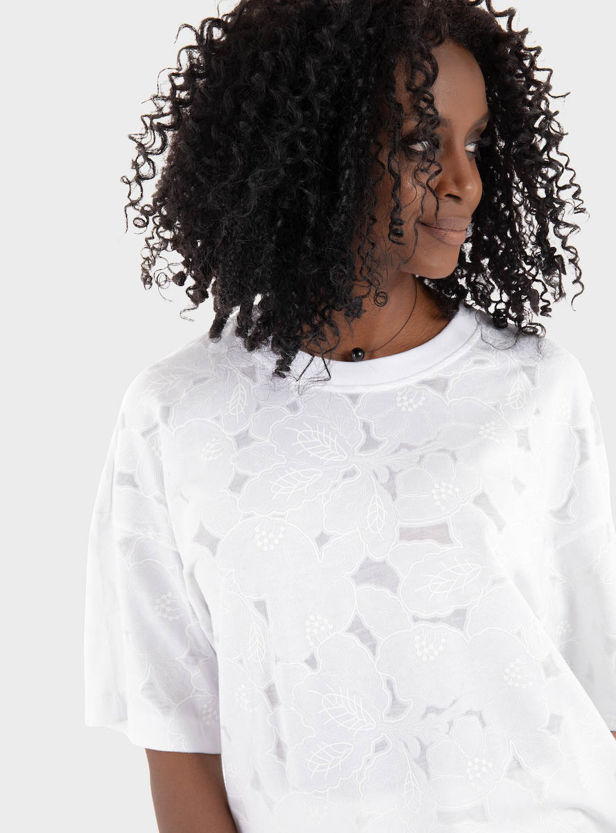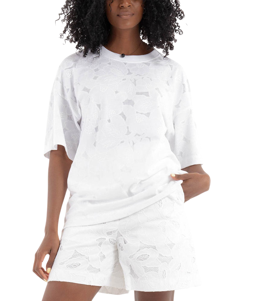 Αναβαθμίστε τις καθημερινές σας εμφανίσεις με αυτό το Γυναικείο Easie Burnout T-Shirt Λευκό Boss 50537595-100 με το μοτίβο με το λογότυπο παντού.