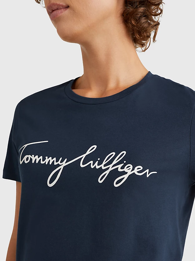 To ιδιαίτερο λογότυπο στο στήθος, δίνει προσωπικότητα σε αυτό το Γυναικείο Heritage T-shirt Navy Μπλε Tommy Hilfiger WW0WW24967-403 με λαιμόκοψη.