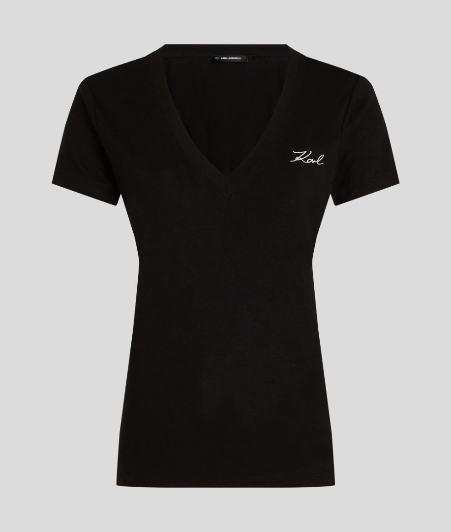 Αυτό το Γυναικείο T-shirt Μαύρο Karl Lagerfeld A3W17070-999 BLACK είναι φτιαγμένο από λινό μείγμα και ξεχωρίζει χάρη στο signature λογότυπο στο στήθος.