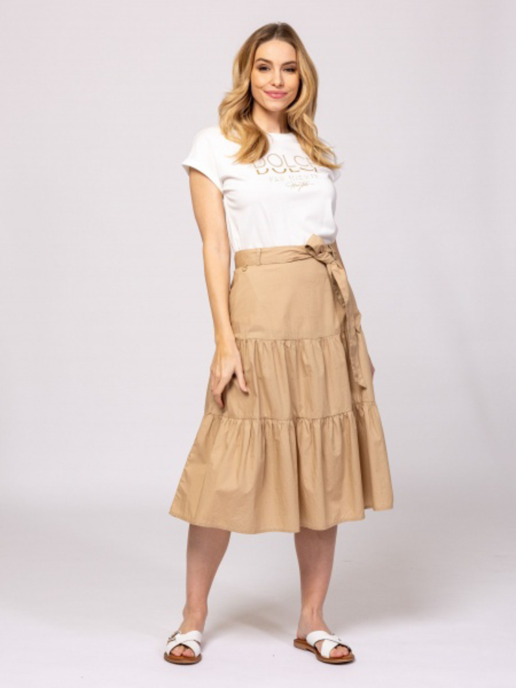 Αναβαθμίστε τις καθημερινές σας εμφανίσεις με αυτό το Γυναικείο Malenas25 T-shirt Λευκό Heavy Tools T17032-ECRU με στάμπα και λογότυπο μπροστά.