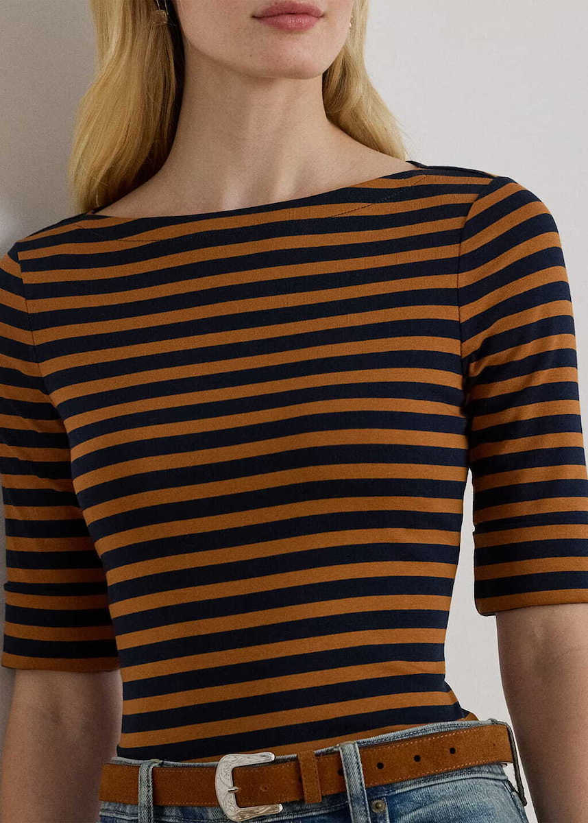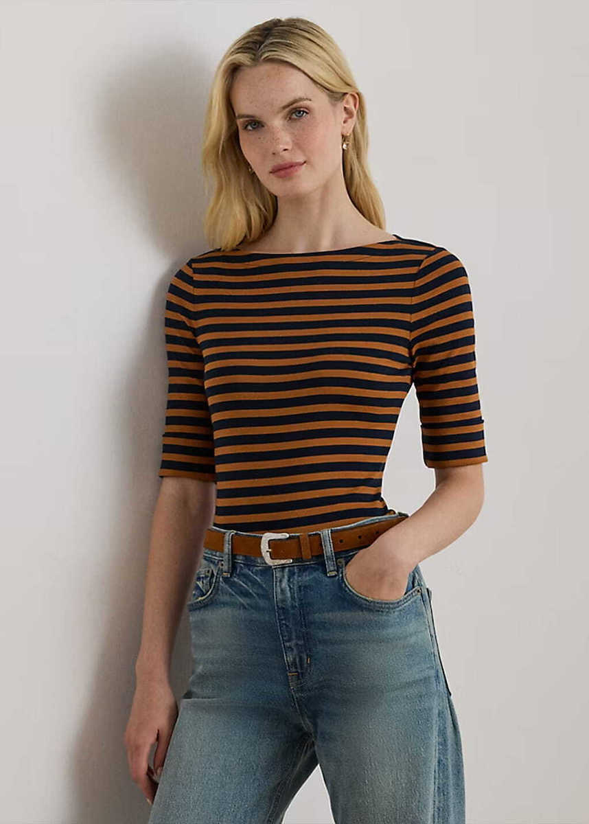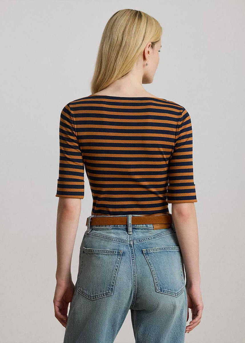 Ανανεώστε τις καθημερινές σας εμφανίσεις με αυτό το Γυναικείο Ριγέ Judy T-shirt Ralph Lauren 200980041001-410 από ελαστικό βαμβάκι με μανίκια μέχρι τον αγκώνα.