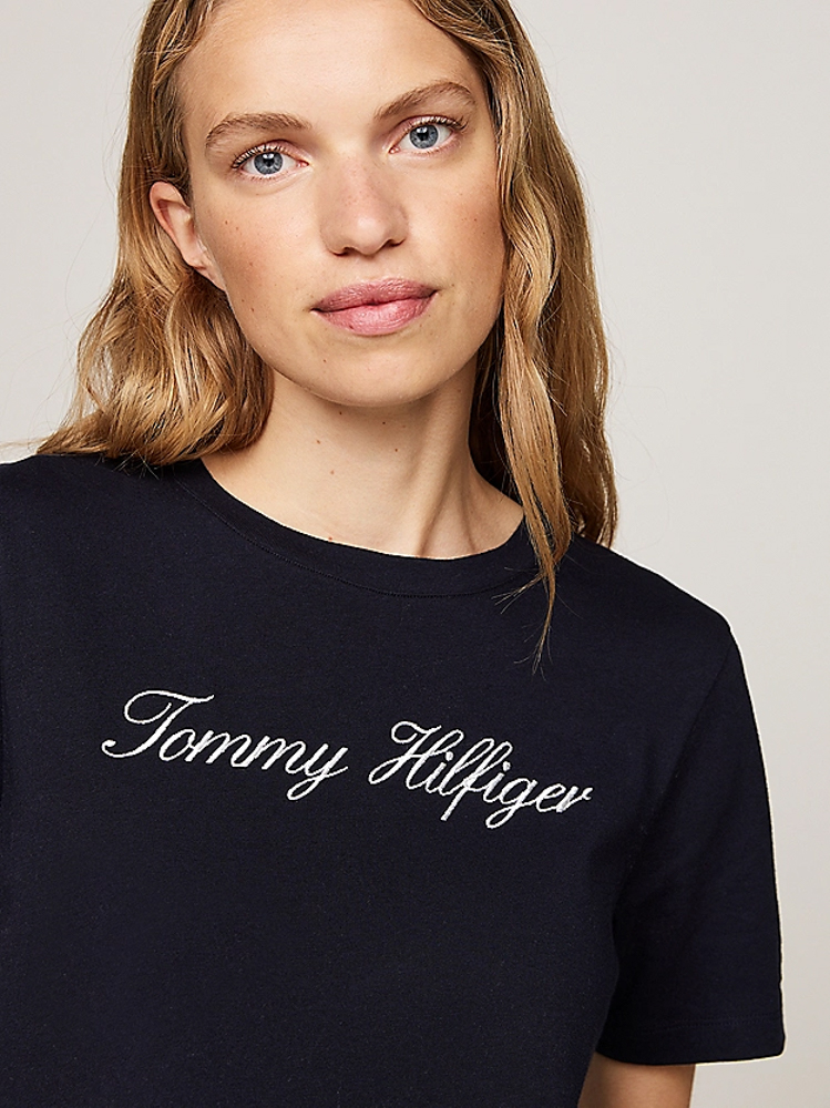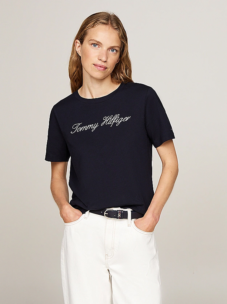 Γυναικείο Script T-shirt Navy Μπλε Tommy Hilfiger WW0WW43459-02G Γυναικείο Script T-shirt Navy Μπλε Tommy Hilfiger WW0WW43459-02G