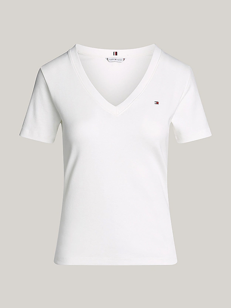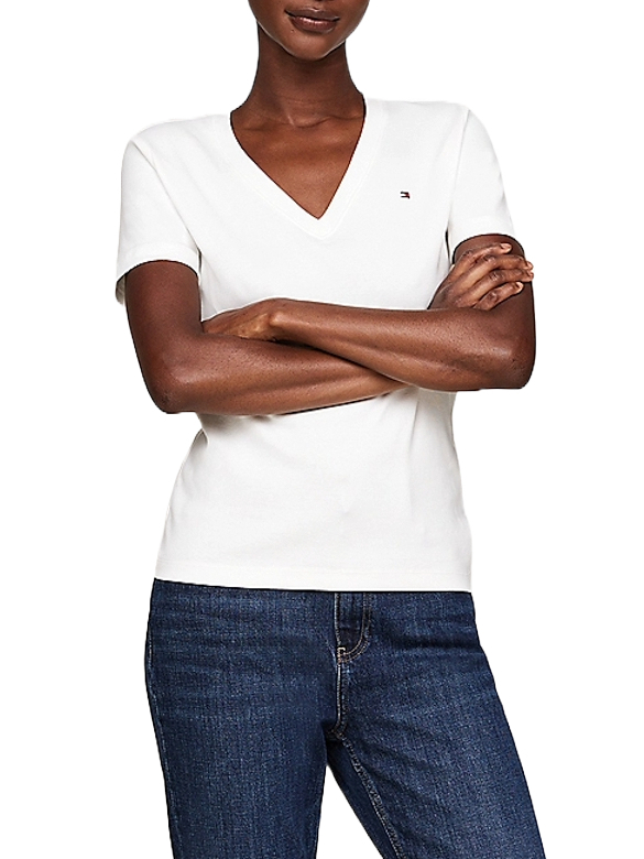 Κομψές και άνετες, με αυτό το βαμβακερό Γυναικείο T-shirt Εκρού Tommy Hilfiger WW0WW40584-02Z το οποίο διαθέτει λαιμόκοψη V και branded λεπτομέρειες.