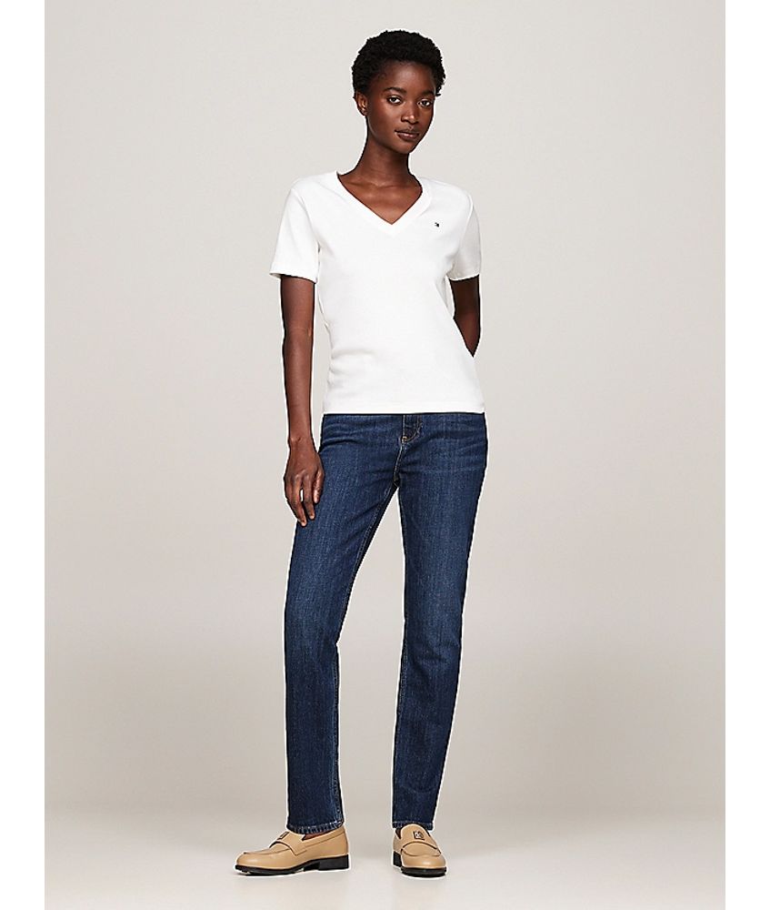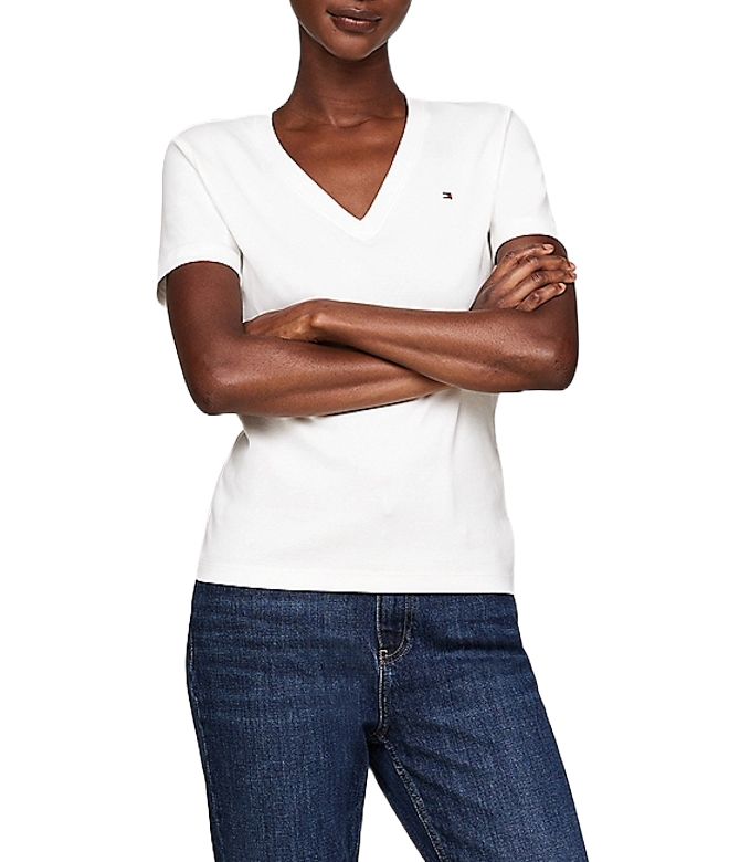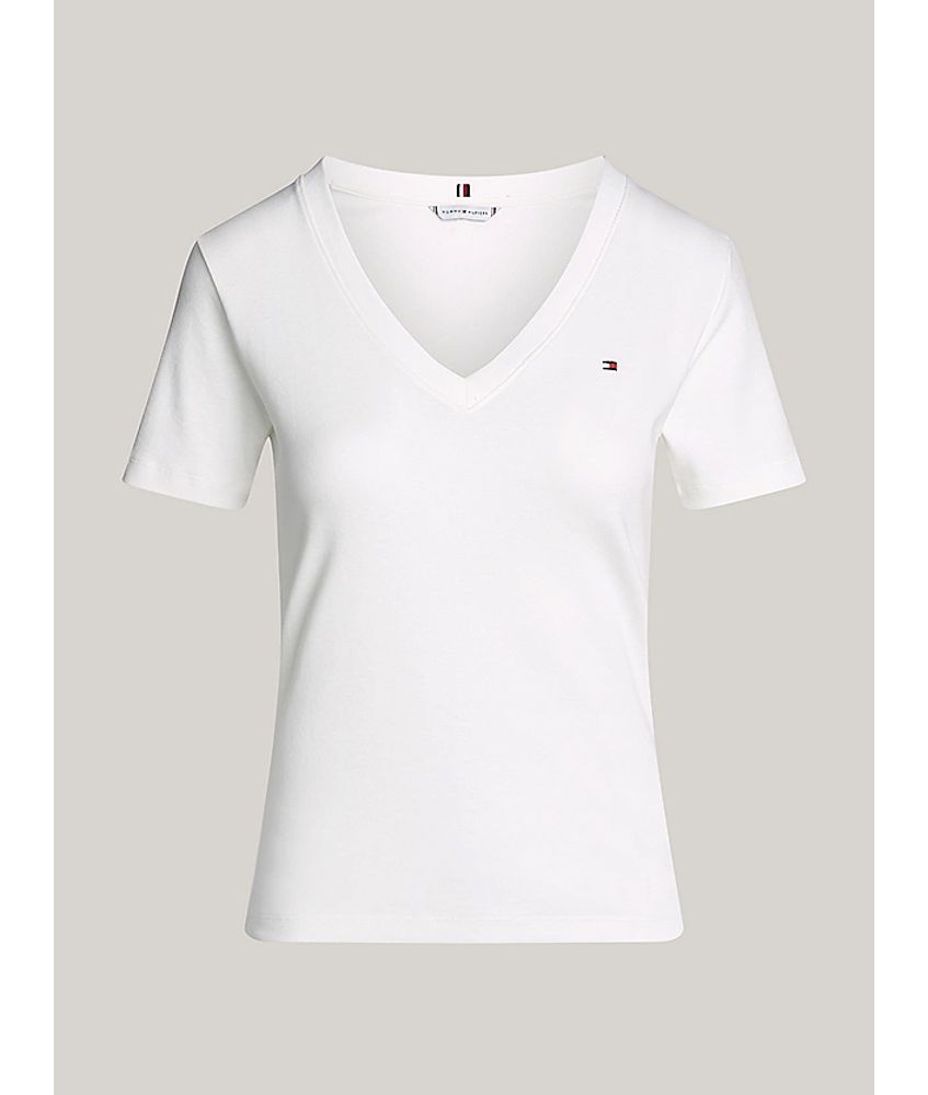 Η νέα PRE FW '25 collection της Tommy Hilfiger μόλις έφτασε! Κομψές και άνετες, με αυτό το βαμβακερό Γυναικείο T-shirt Εκρού Tommy Hilfiger WW0WW40584-02Z το οποίο διαθέτει λαιμόκοψη V και branded λεπτομέρειες.
