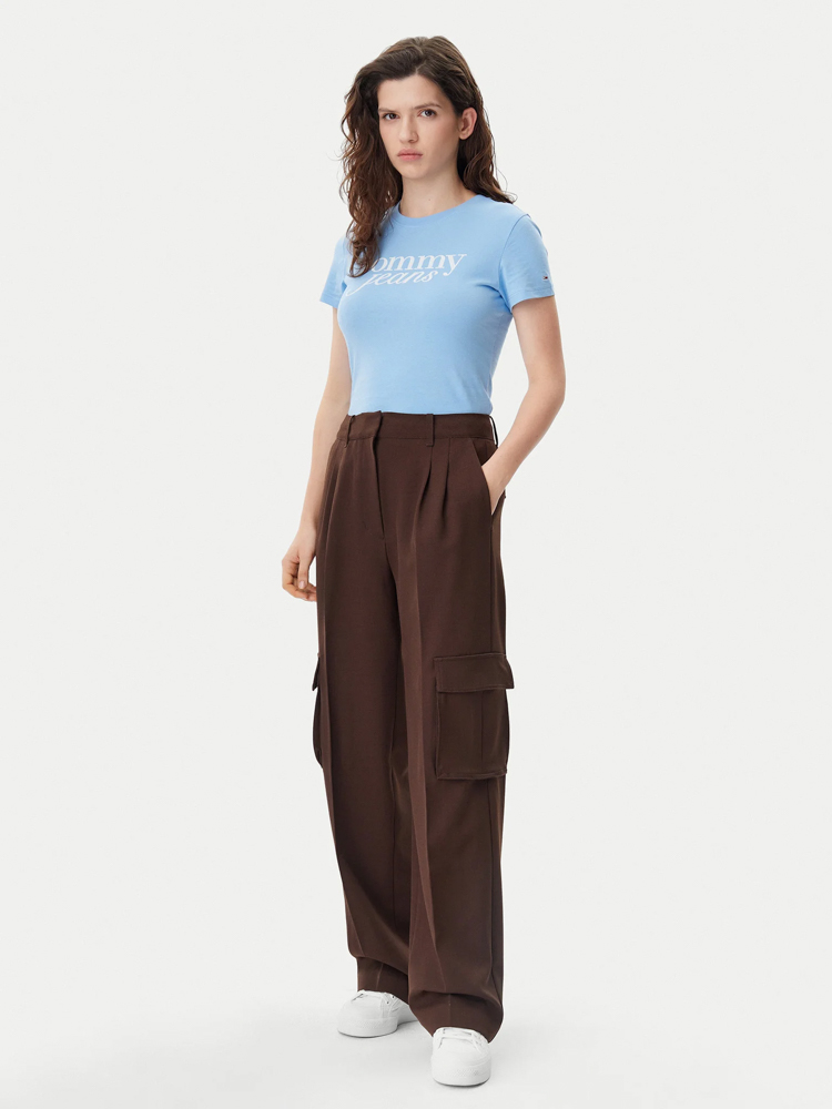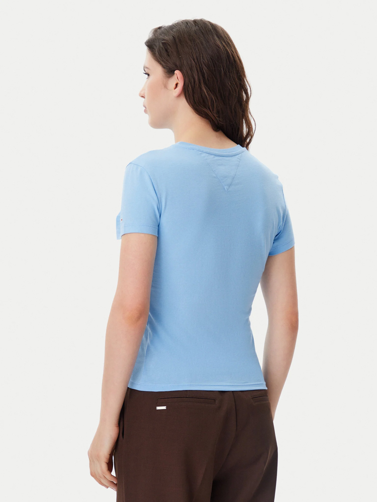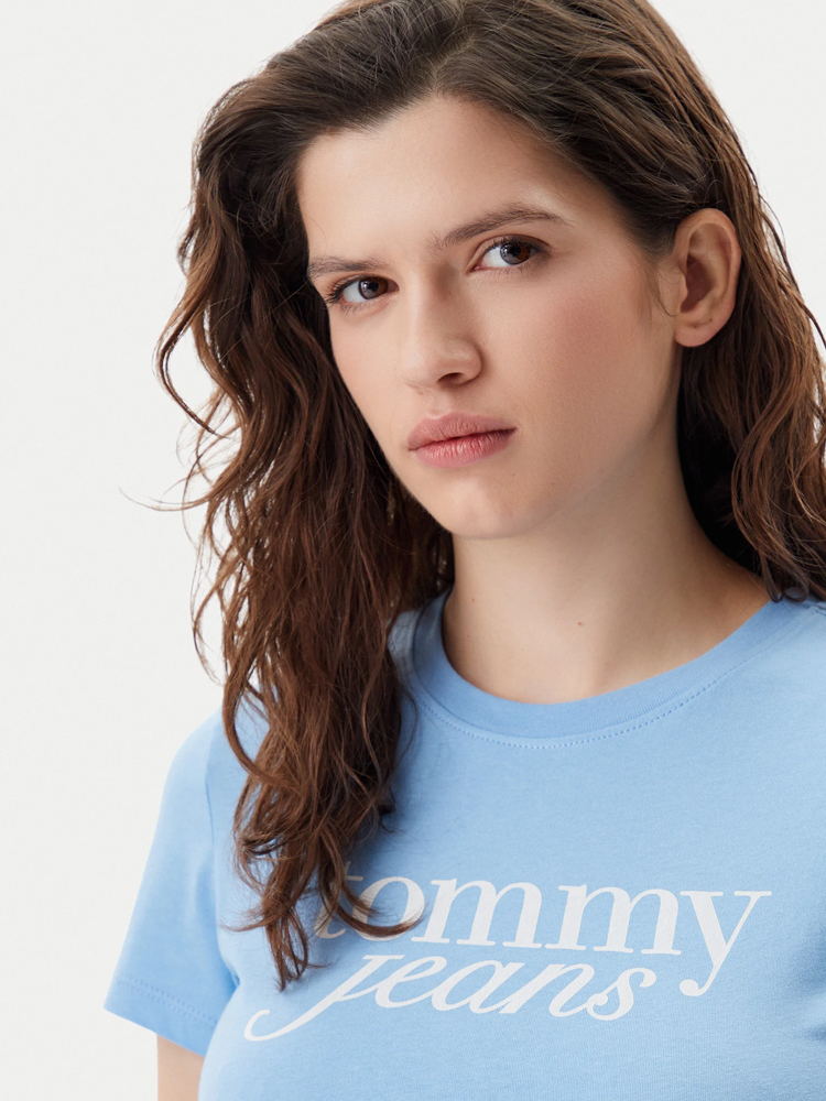 Αναβαθμίστε τις καθημερινές σας εμφανίσεις με αυτό το κομψό Γυναικείο T-shirt Γαλάζιο Tommy Jeans DW0DW19447-C12 σε στενή γραμμή με μπροστινό λογότυπο Tommy Jeans.