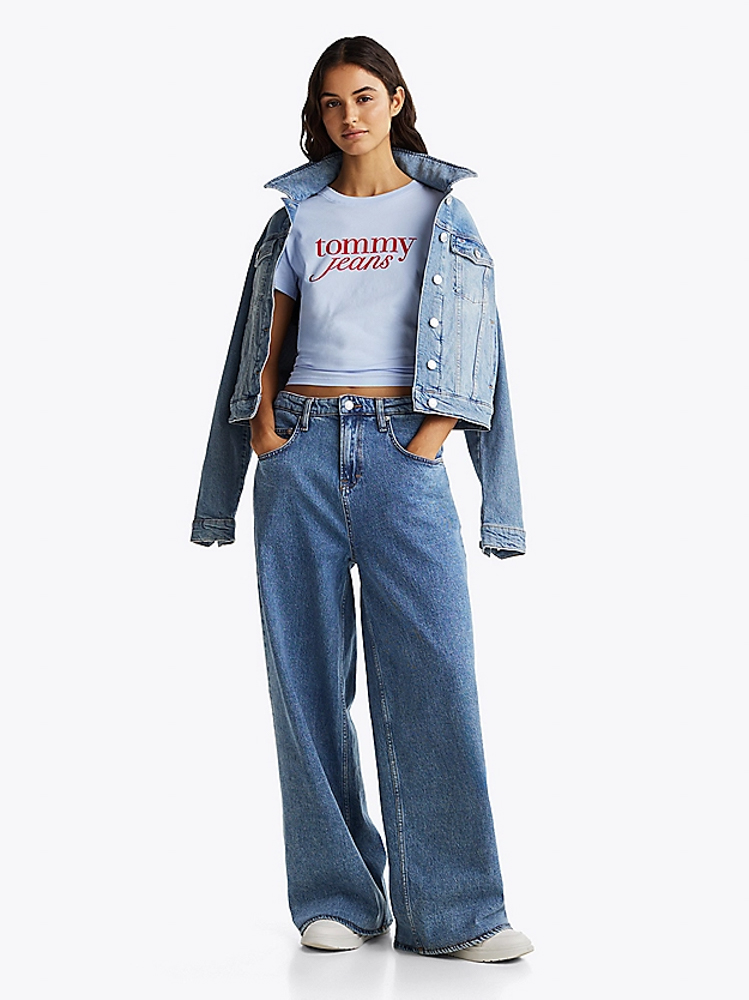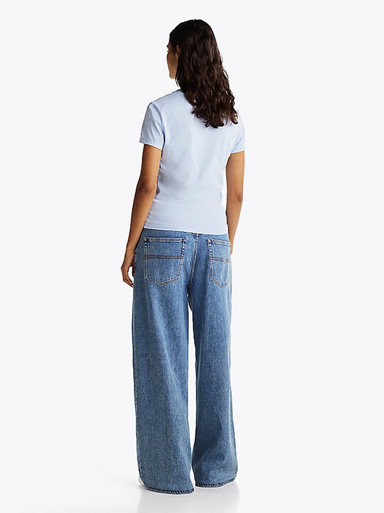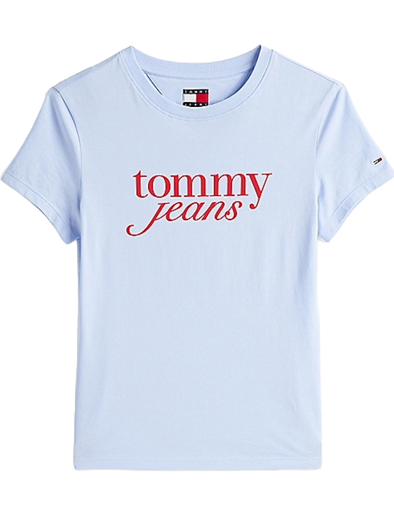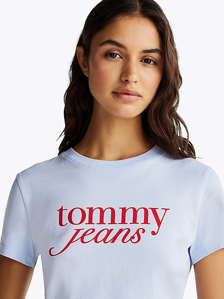 Αναβαθμίστε τις καθημερινές σας εμφανίσεις με αυτό το κομψό Γυναικείο T-shirt Γαλάζιο Tommy Jeans DW0DW19447-C3Q σε στενή γραμμή με μπροστινό λογότυπο Tommy Jeans.