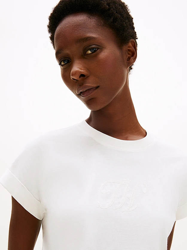 Η νέα PRE FW '25 collection της Tommy Hilfiger μόλις έφτασε! Ένα κομψό κομμάτι για τη συλλογή σας αποτελεί αυτό το Γυναικείο T-shirt Λευκό Tommy Hilfiger WW0WW47157-YBL το οποίο είναι φτιαγμένο από αγνό βαμβάκι.