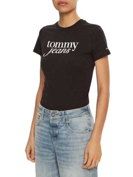 Αναβαθμίστε τις καθημερινές σας εμφανίσεις με αυτό το κομψό Γυναικείο T-shirt Μαύρο Tommy Jeans DW0DW19447-BDS σε στενή γραμμή με μπροστινό λογότυπο Tommy Jeans.
