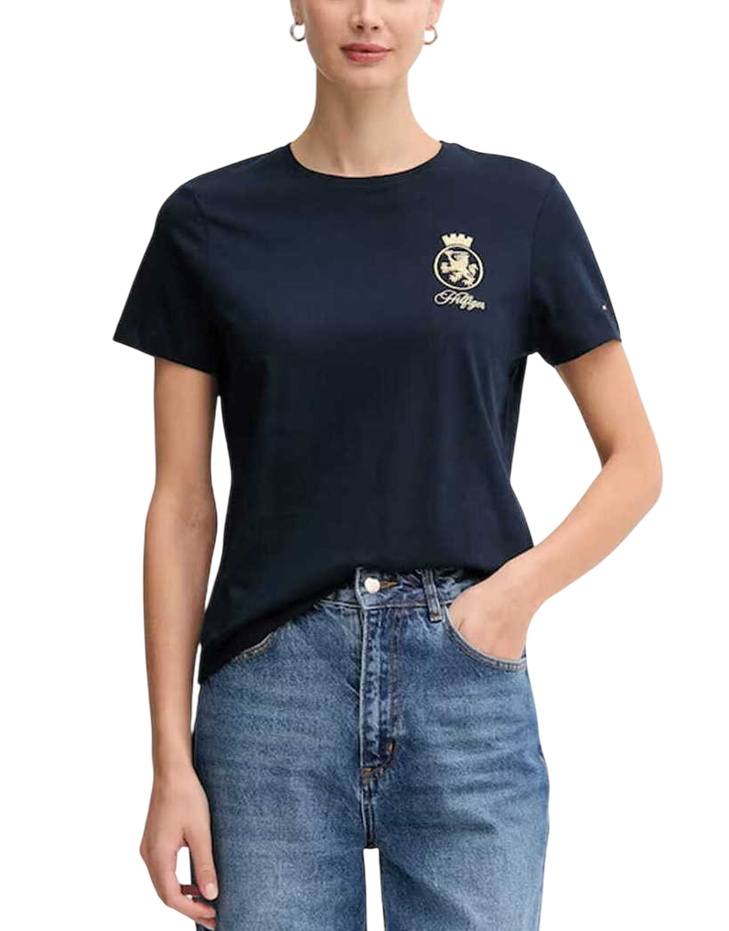 Γυναικείο TH Crest T-shirt Navy Μπλε Tommy Hilfiger WW0WW46153-C1G Γυναικείο TH Crest T-shirt Navy Μπλε Tommy Hilfiger WW0WW46153-C1G