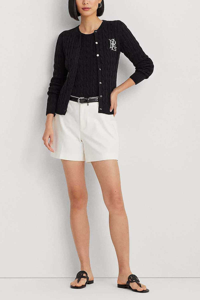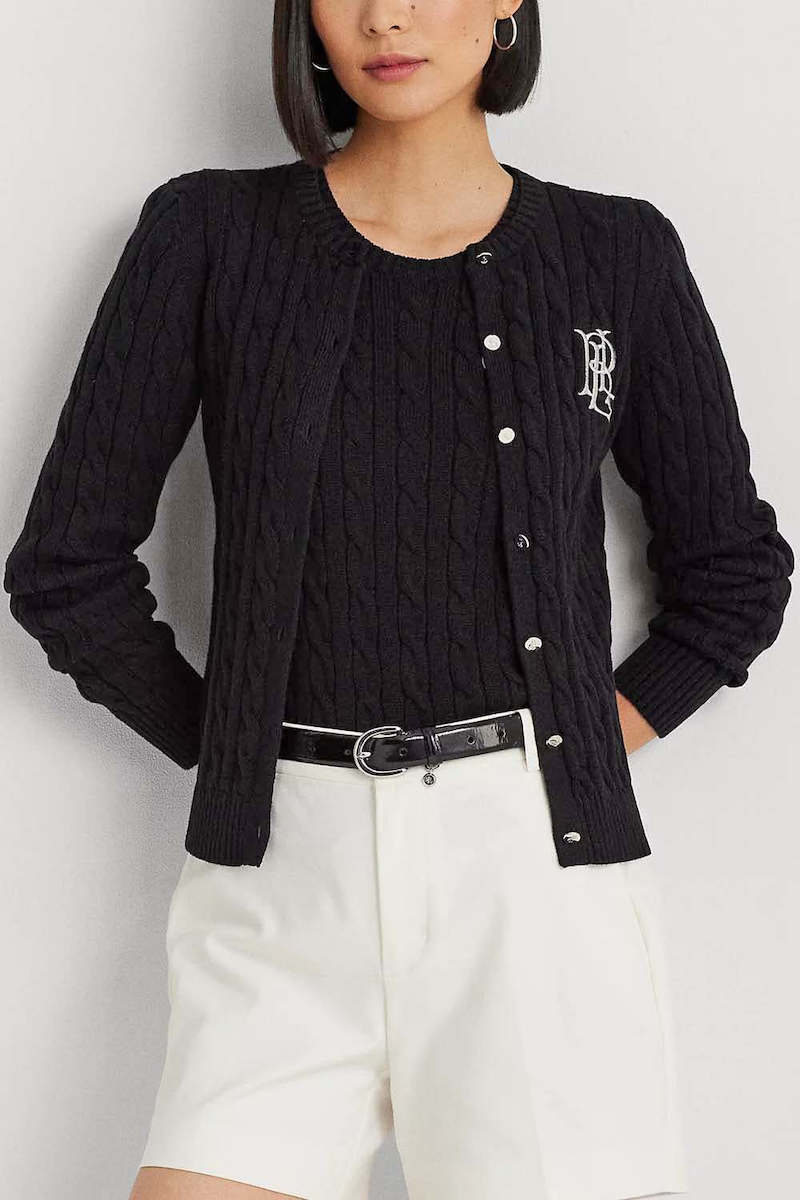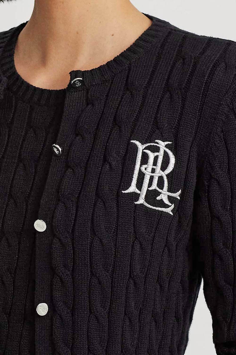 Ανανεώστε τις καθημερινές σας εμφανίσεις με αυτή τη Γυναικεία Ralhan Πλεκτή Ζακέτα Μαύρη Ralph Lauren 200932225003-001 με cable πλέξη και το λογότυπο στο στήθος.