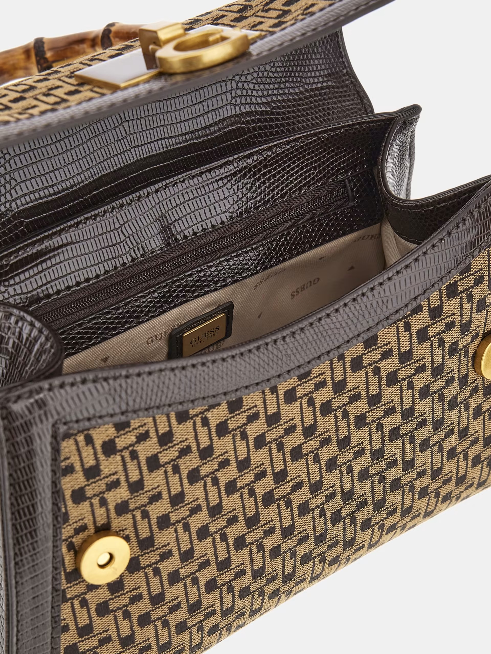 Ολοκληρώστε τις εμφανίσεις σας με αυτή τη ΓΓυναικεία Stephi Τσάντα Καφέ Guess HWJK7875210-BROWN LOGO η οποία διαθέτει μοτίβο με το μονόγραμμα και μεταλλικό λογότυπο μπροστά.