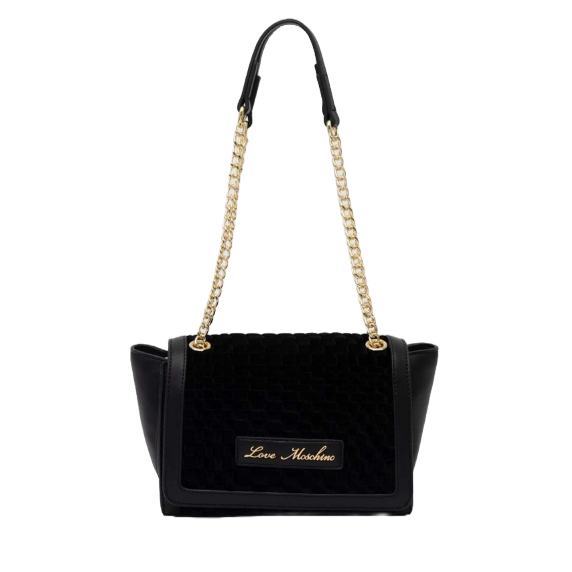 Αυτή η κομψή Γυναικεία Τσάντα Ώμου Μαύρη Love Moschino JC4131PP1LLK1-00A διαθέτει βελούδινη υφή και πλακέτα με το λογότυπο χαρίζοντάς σας iconic στιλ.
