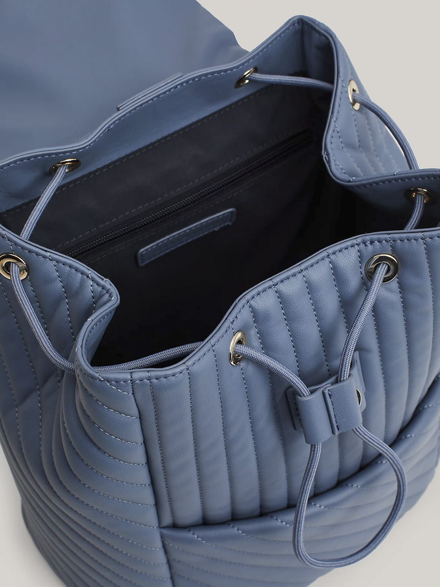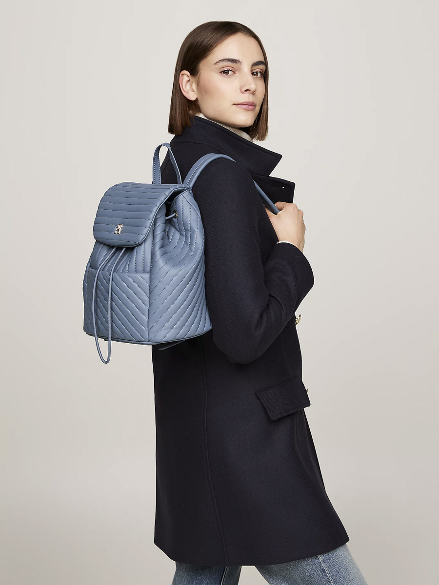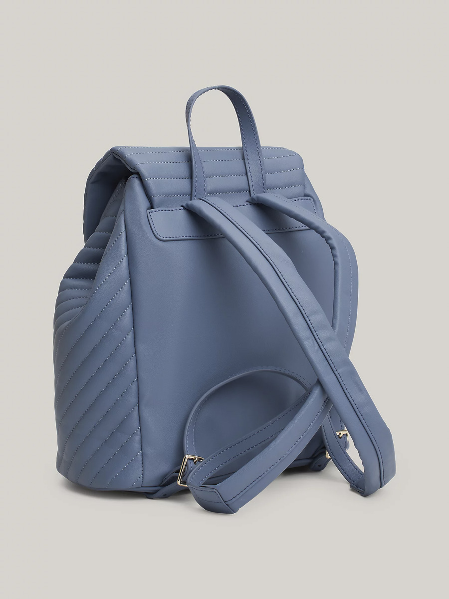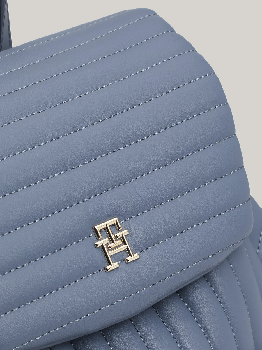 Το καπιτονέ φινίρισμα προσθέτει εκλεπτυσμένη υφή σε αυτό το Γυναικείο Σακίδιο Πλάτης Μπλε Tommy Hilfiger AW0AW17014-C0Z, ενώ ολοκληρώνεται με το branded μονόγραμμα μπροστά.