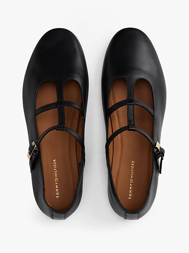 Αυτές οι Γυναικείες Δερμάτινες Μπαλαρίνες Μαύρες Tommy Hilfiger FW0FW09153-BDS συνδυάζουν αρμονικά το μοντέρνο με το κλασικό στιλ, μετατρέποντας το λουράκι Mary Jane σε ένα σύγχρονο διπλό T-bar σχέδιο.