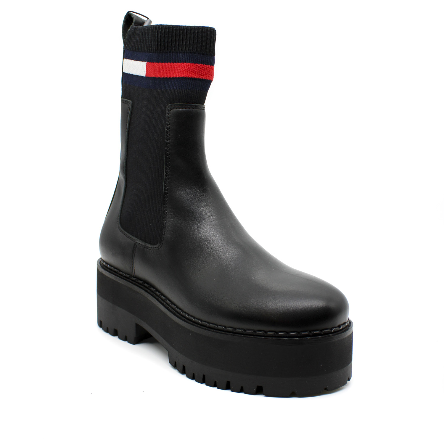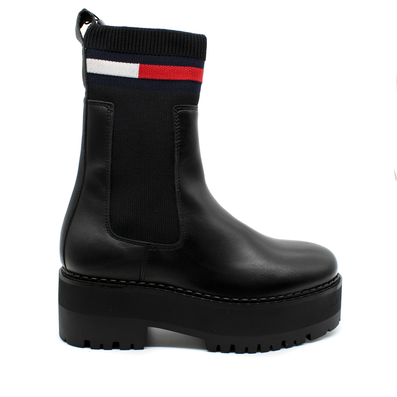 Γυναικεία Δερμάτινα Flatform Chelsea Μποτάκια Μαύρα Tommy Jeans EN0EN02301-BDS