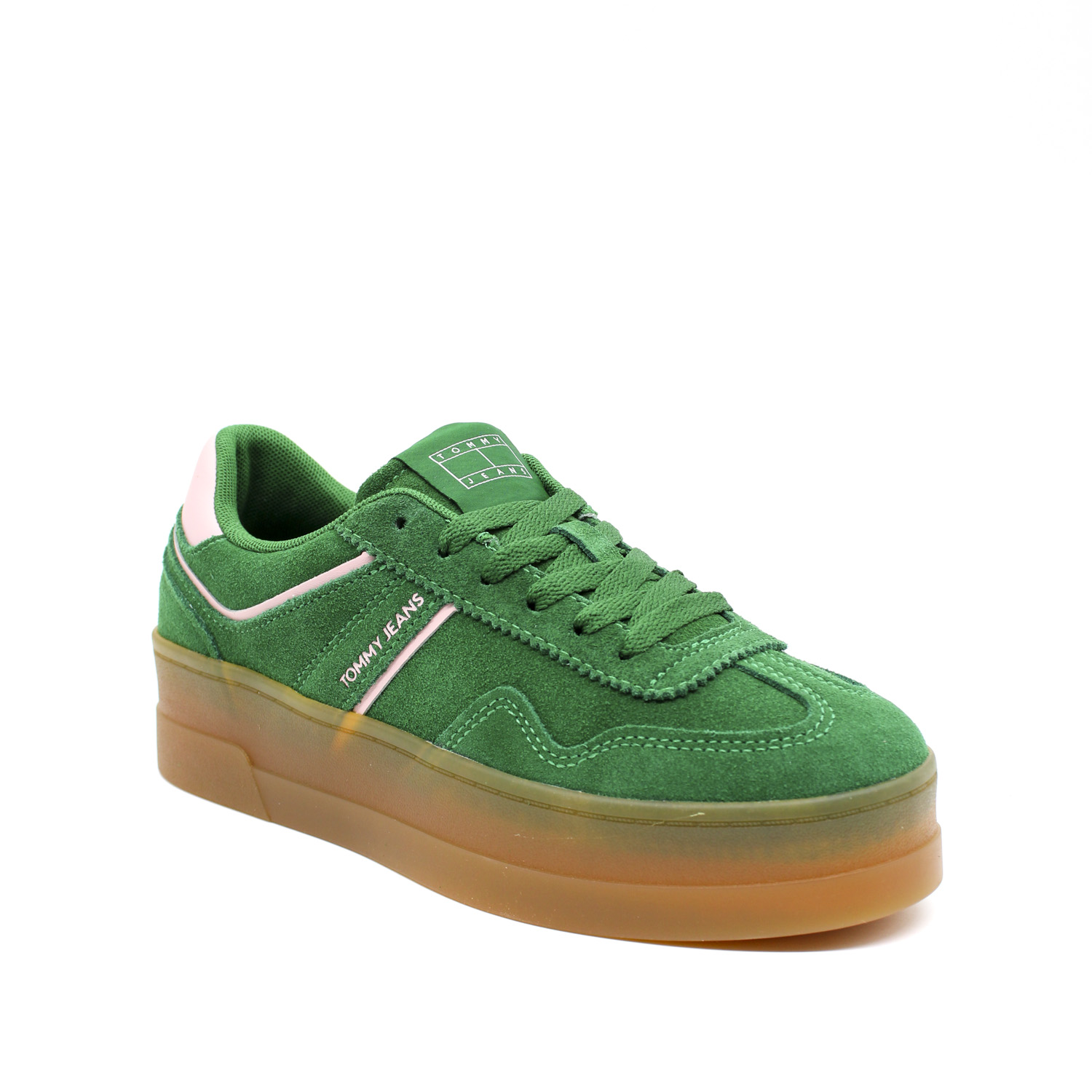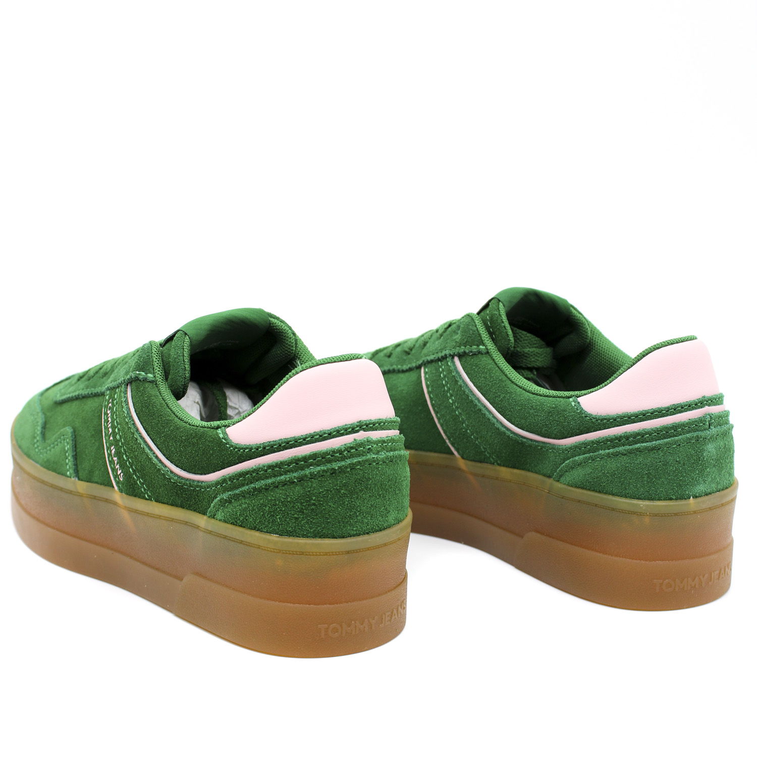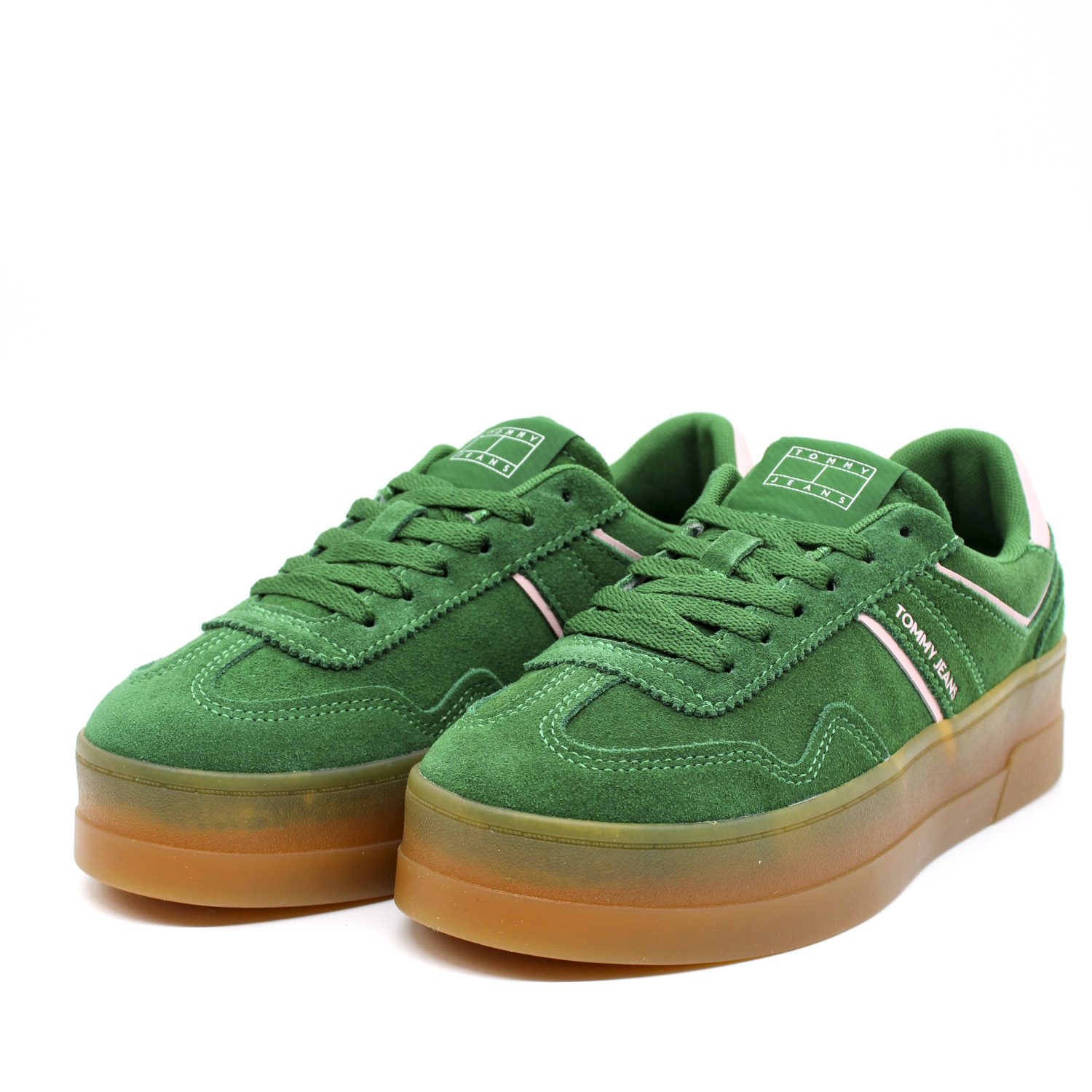 Το suede φινίρισμα και οι εκλεπτυσμένες branded λεπτομέρειες μαγνητίζουν τα βλέμματα σε αυτά τα Γυναικεία The Greenwich Sneakers Πράσινα Tommy Jeans EN0EN02734-L2P.